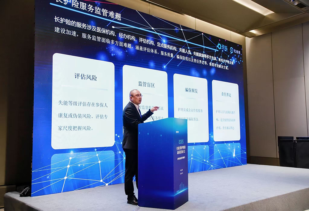 在专题研讨环节,与会领导、专家及企业代表围绕长护险基金监管与产业发展等议题展开深度交流。天与养老副总裁刘伟在分享中从当前监管与协同痛点切入,阐述了天与·松椿果“长护芯”系统如何通过硬件终端采集到的客观数据,生成服务有效性验证报告 与 失能等级交叉稽核报告,为基金安全构筑“数字防火墙”,构建了一套 “事前智能提醒、事中自动审核、事后溯源监管” 的全周期闭环管理机制,并介绍了该系统在助力服务机构降本增效、规范运营方面的协同价值。